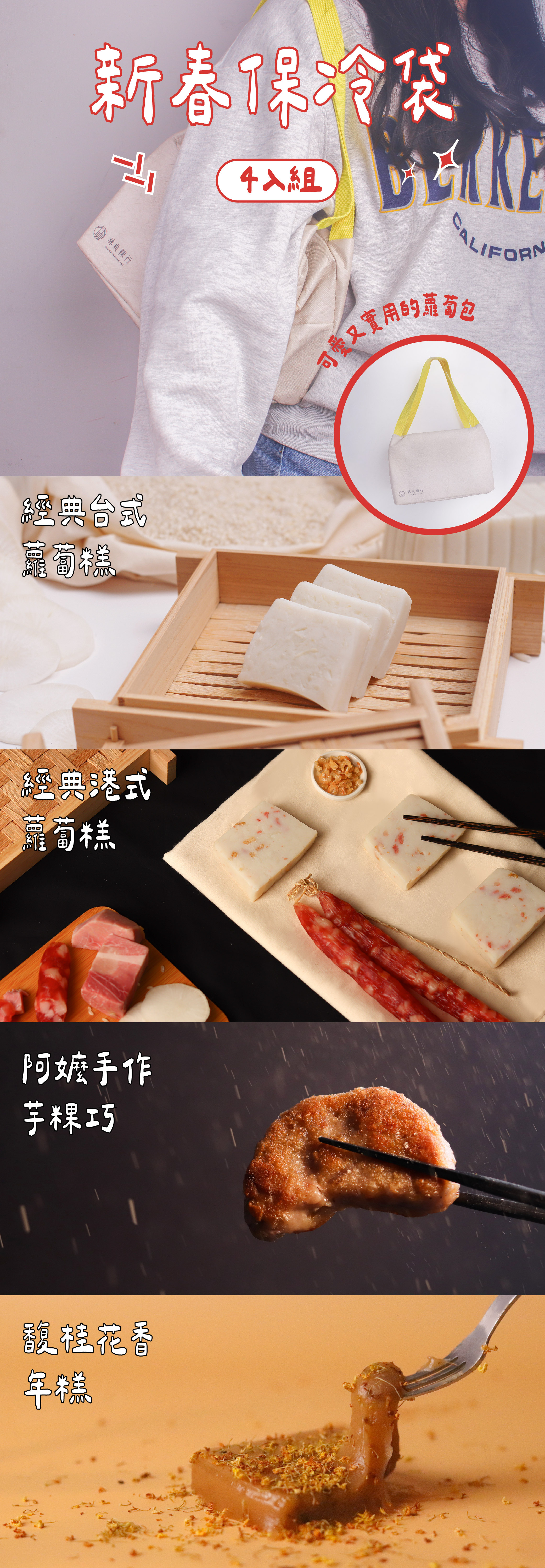 新春保冷袋(經典台式蘿蔔糕、經典港式蘿蔔糕、阿嬤手作芋粿巧、馥桂花香年糕)4入組